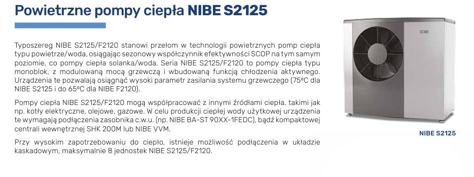 NIBE S2125 to inteligentna, sterowana inwerterowo-powietrzna pompa ciepła.