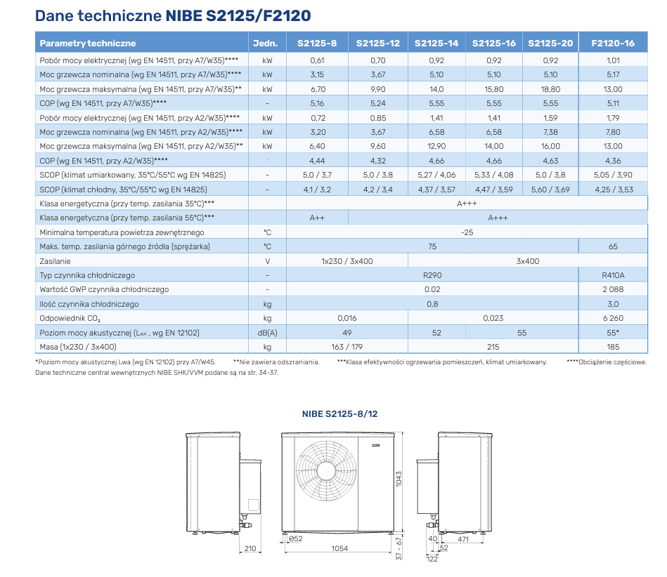 • SCOP 5,0 (dot. S2125-8,-12, klimat umiarkowany, 35ºC)